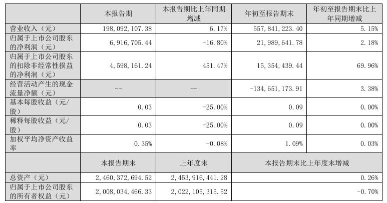 力合科技(湖南)股份有限公司(簡稱:力合科技)近日發布《2025年第三季度報告》。2025年前三季度,力合科技實現營收約5.58億元,同比增加5.15%;歸屬于上市公司股東的凈利潤約2199萬元,同比增加2.18%;基本每股收益0.09元,同比增加0%。
